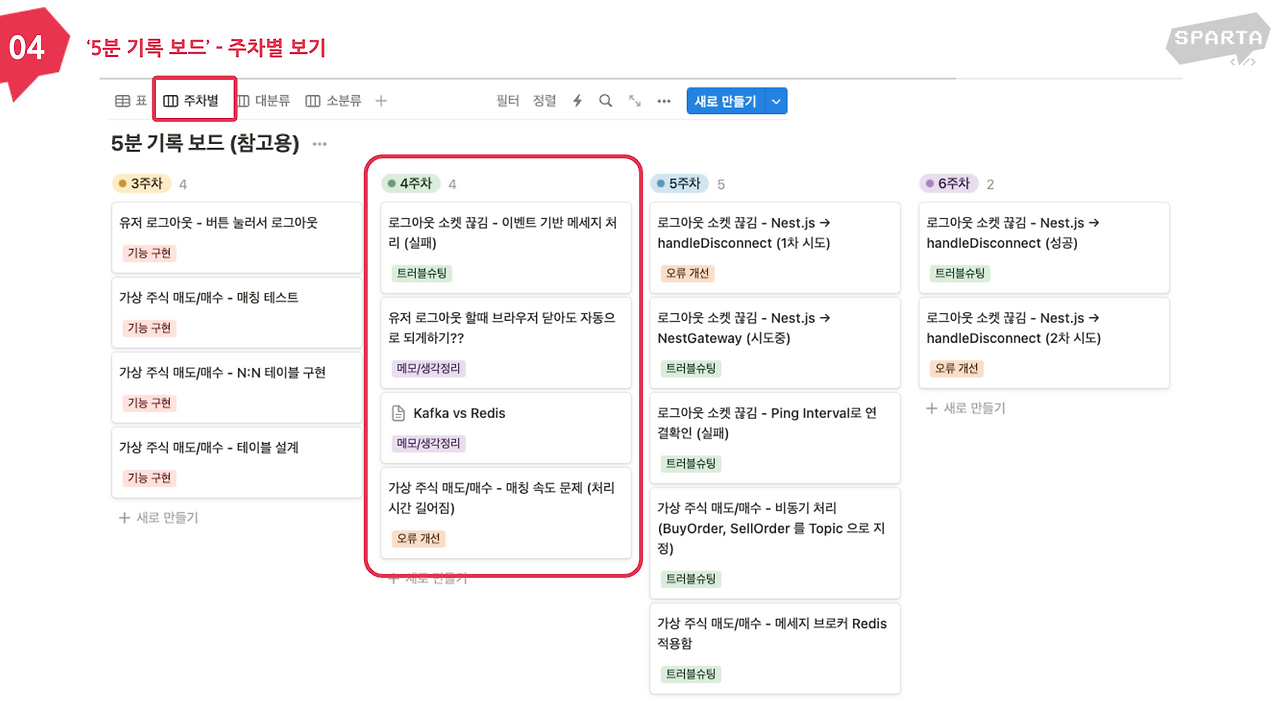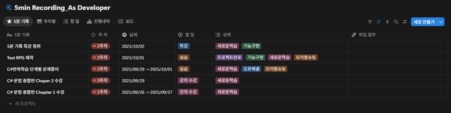 대분류, 소분류를 크고 작은 카테고리 형식으로 필터 기능으로 한 눈에 볼 때 사용한다. 기록은 대단히 작성할 필요 없이 꾸준하게 작성해야 한다. TIL과 다르게 분류해 놓은 기록들을 필터링하여 한눈에 보고 요약하기 용이하다.