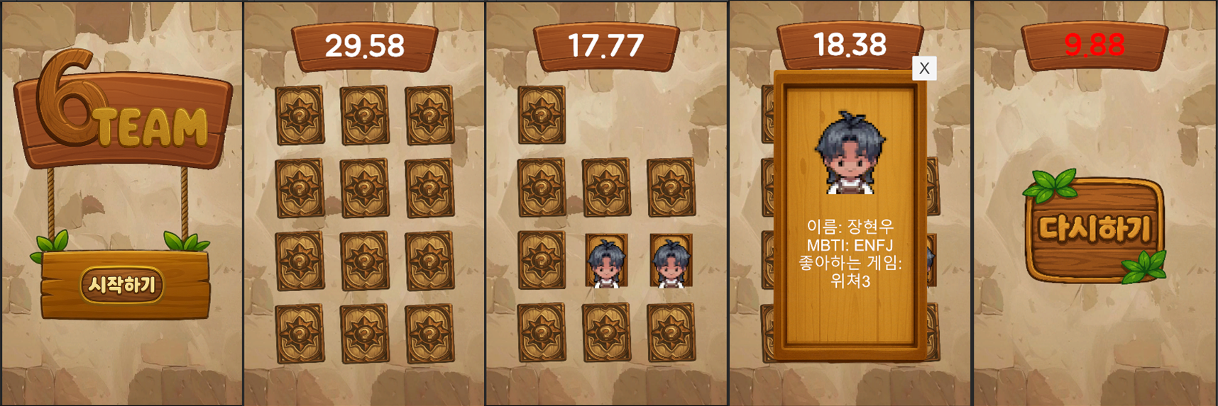 카드를 뒤집어 매치가 되었을 때 나타나는 맴버 카드가 구현되었다.